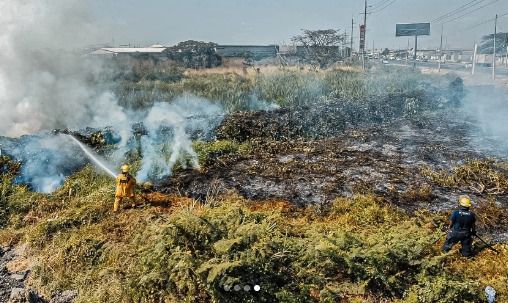 Gran quema de Vegtación es combatida.